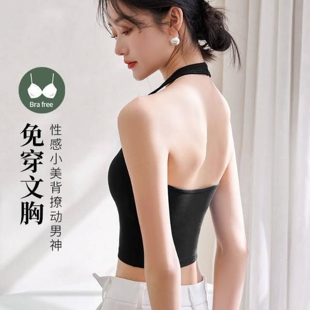 FEE BABY【Fee爆款6色】掛脖直坑紋胸墊細肩帶吊帶繞頸背心小可愛 BRA TOP🔥螺紋吊帶 細肩內衣 美背背心 春天穿搭 正韓