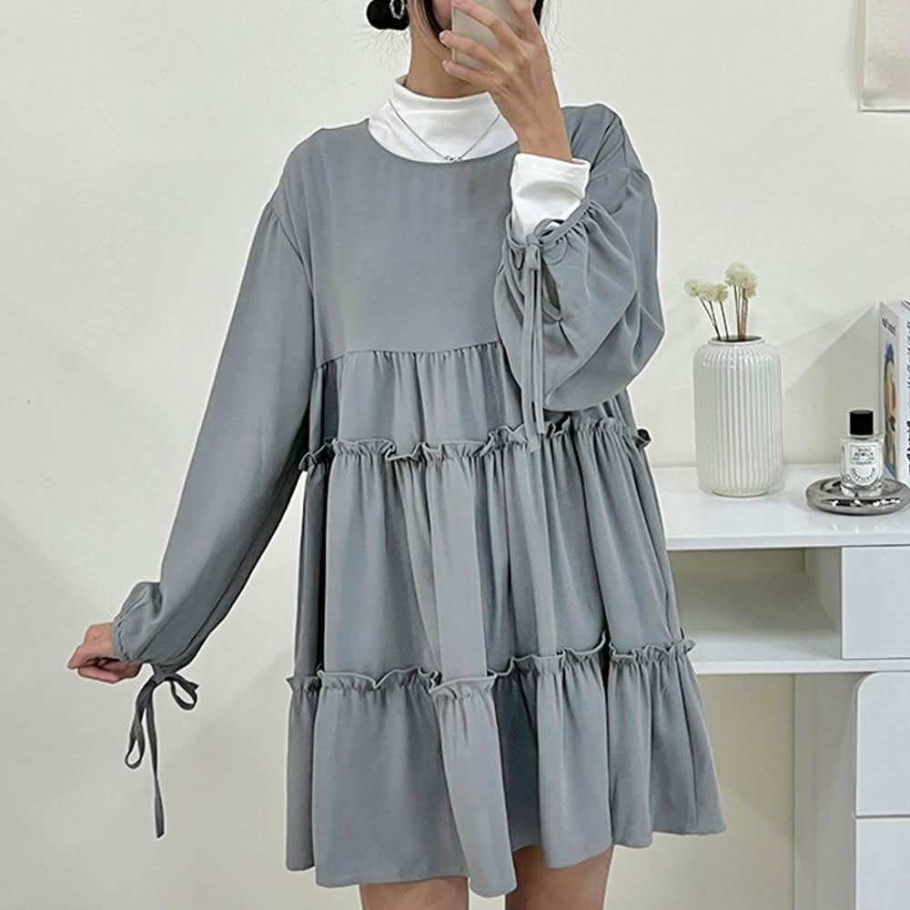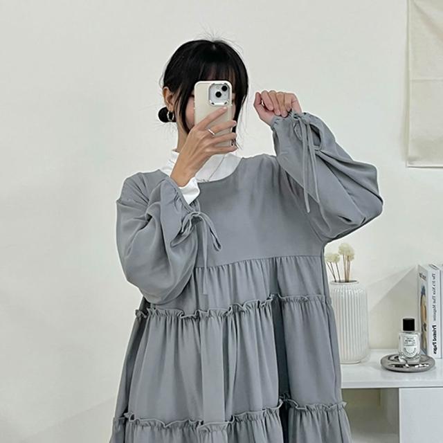 FEE BABY【Fee現貨9色】雲朵綁帶蓬袖蛋糕洋裝🔥洋裝 長袖 連身裙 蛋糕裙 長袖洋裝 日系洋裝 氣質洋裝 內搭上衣 a字裙 雪紡