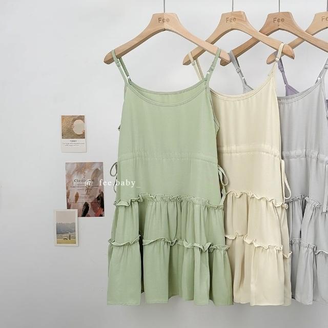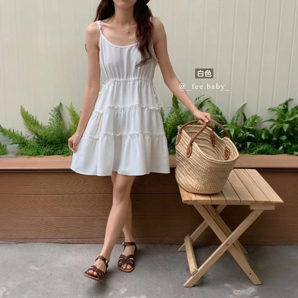 FEE BABY【Fee隔日到貨9色】細肩帶蛋糕裙襬洋裝🔥蛋糕裙 短洋裝 無袖 洋裝 連身裙 可調式肩帶 吊帶裙 白色洋裝