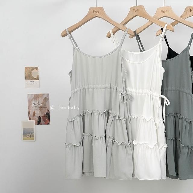 FEE BABY【Fee隔日到貨9色】細肩帶蛋糕裙襬洋裝🔥蛋糕裙 短洋裝 無袖 洋裝 連身裙 可調式肩帶 吊帶裙 白色洋裝