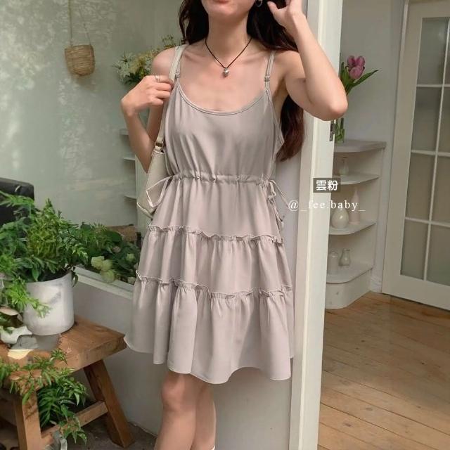 FEE BABY【Fee隔日到貨9色】細肩帶蛋糕裙襬洋裝🔥蛋糕裙 短洋裝 無袖 洋裝 連身裙 可調式肩帶 吊帶裙 白色洋裝