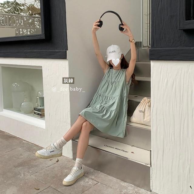 FEE BABY【Fee現貨8色】側口袋蛋糕背心裙短洋裝🔥蛋糕裙 連身裙 洋裝 a字裙 傘裙 日系穿搭 白色洋裝 無袖洋裝 春天穿搭