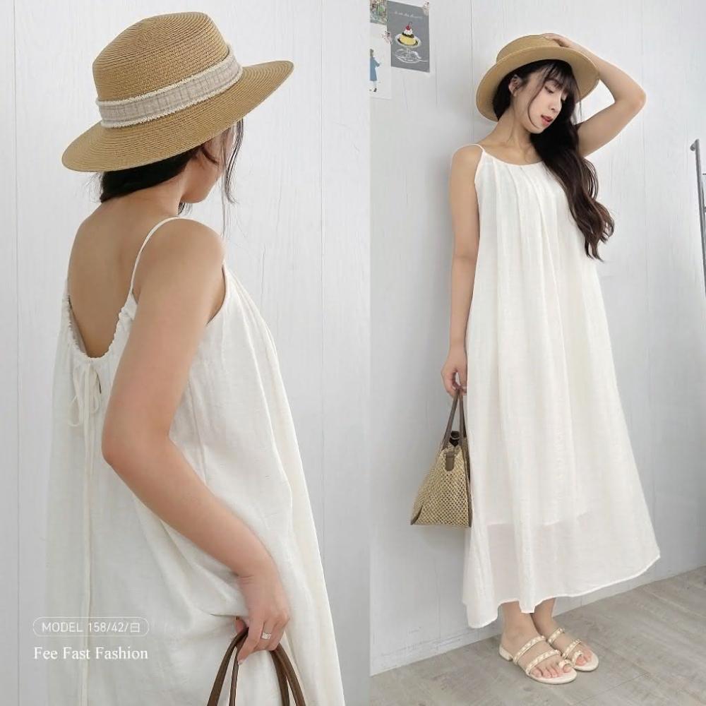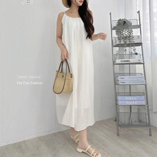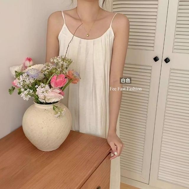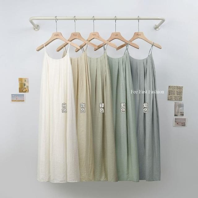 FEE BABY【Fee現貨5色】細肩帶棉麻後綁帶洋裝🌸渡假穿搭 洋裝 長洋裝 無袖洋裝 連身裙 連衣裙 長裙 韓系穿搭 秋天