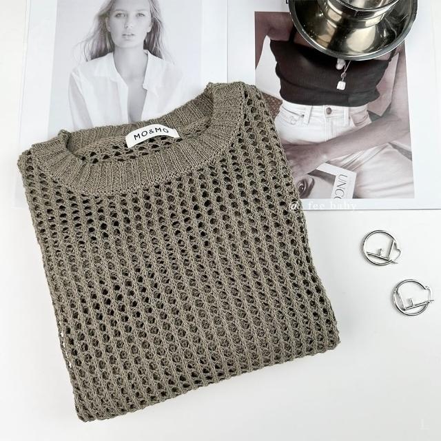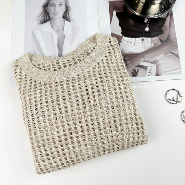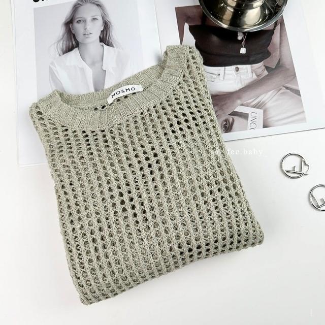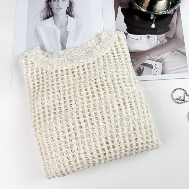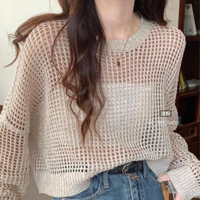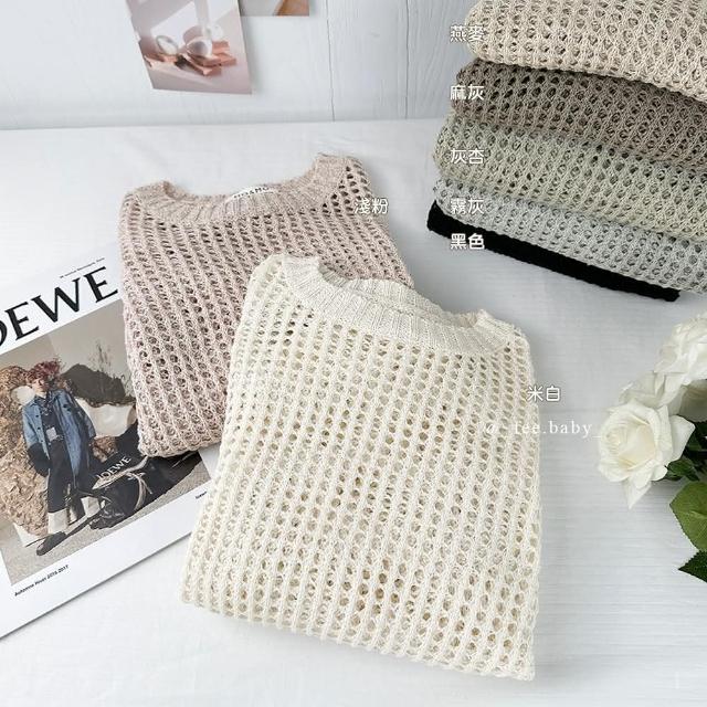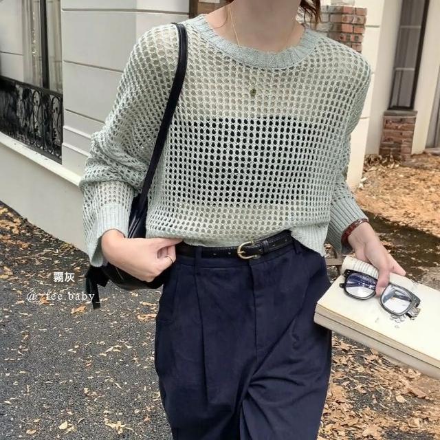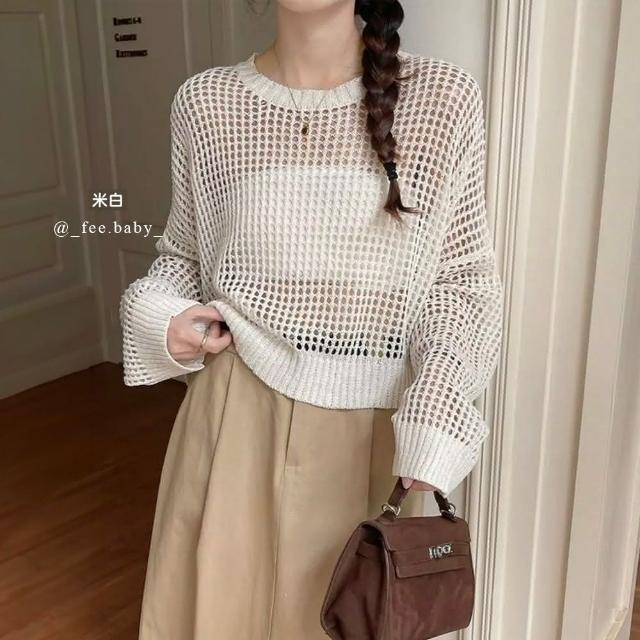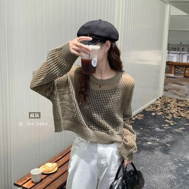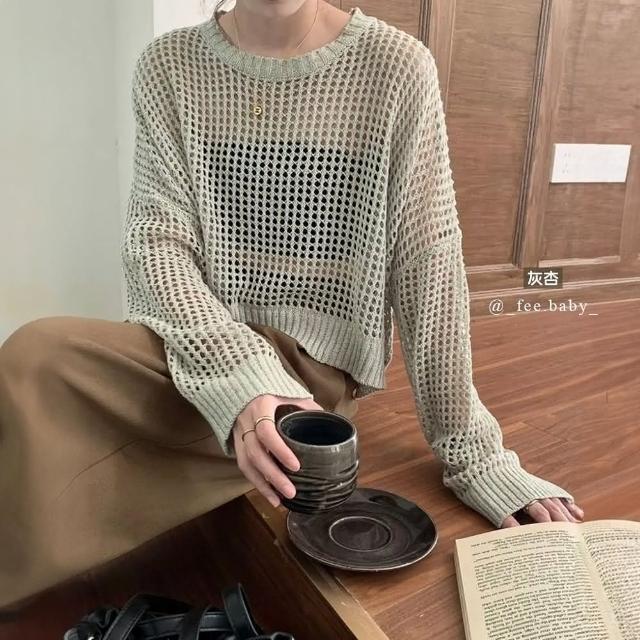 FEE BABY【Fee爆款7色】大厚邊圓領針織鏤空洞洞上衣🔥針織長袖 透膚鏤空 洞洞針織 鏤空針織衫 短版上衣 鏤空 春天穿搭 正韓