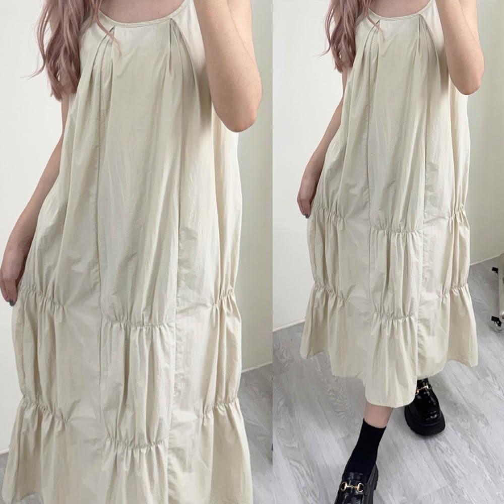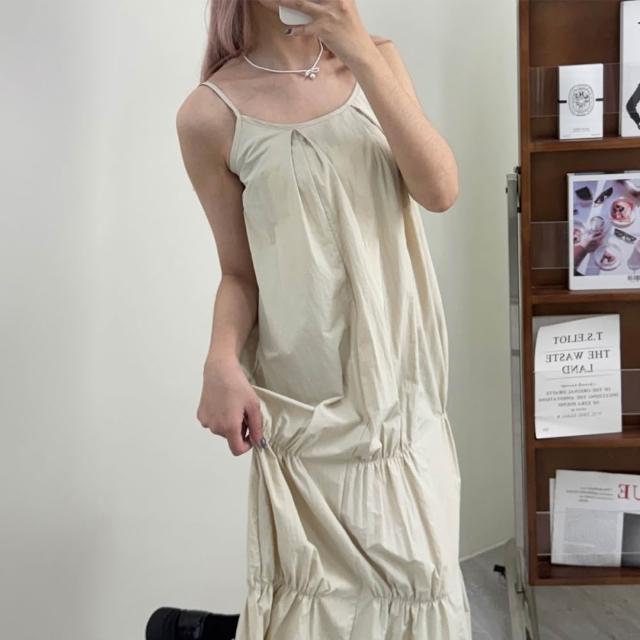FEE BABY【Fee隔日到貨3色】細肩帶蛋糕造型長洋裝吊帶褲🔥吊帶裙 連身裙 連衣裙 吊帶長洋 無袖洋裝系穿搭 疊穿吊帶 韓國