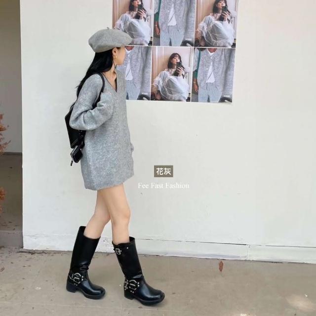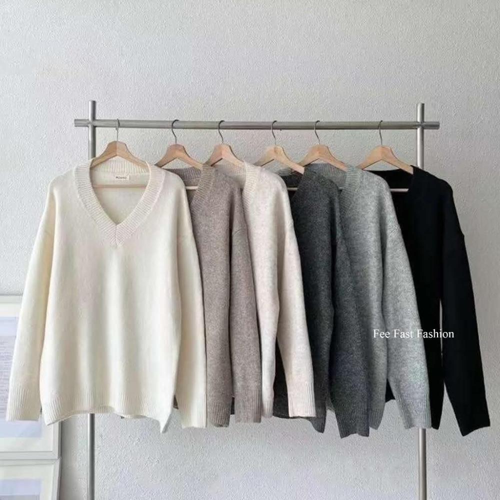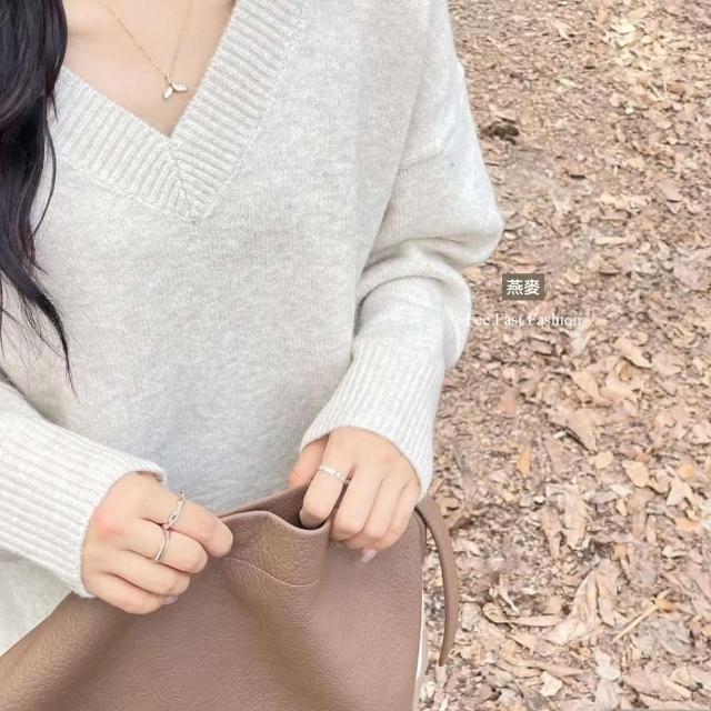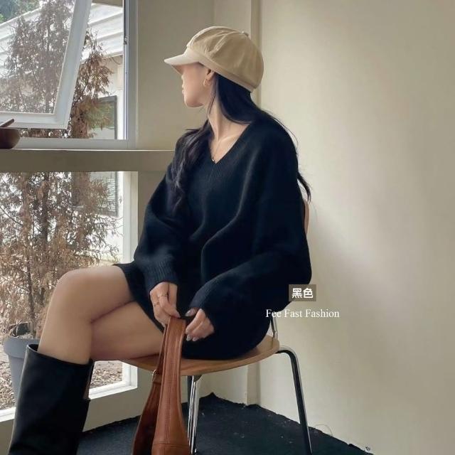 FEE BABY【Fee現貨6色】長款V領針織毛衣🔥長版毛衣 長版上衣 女上衣 V領上衣 韓系穿搭 秋天穿搭 秋天 長袖上衣