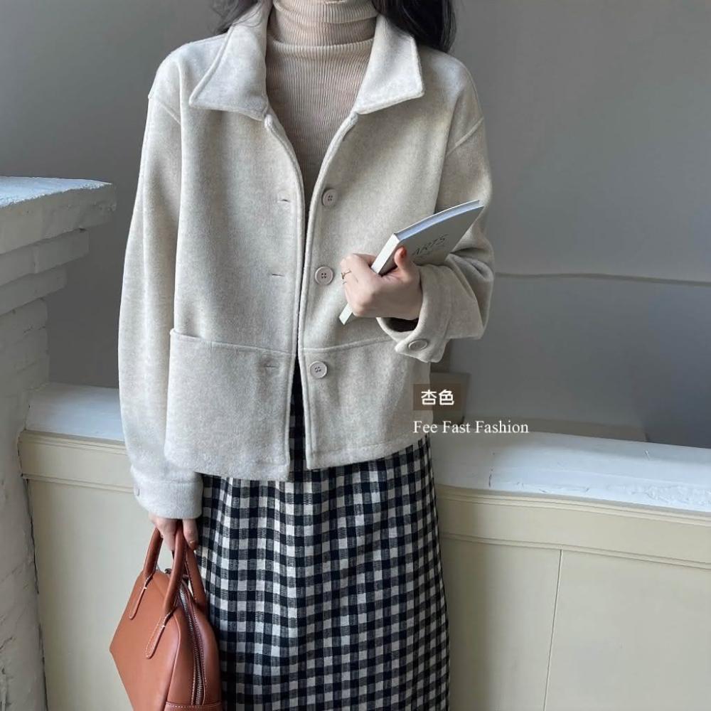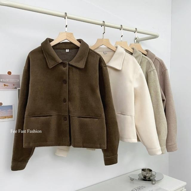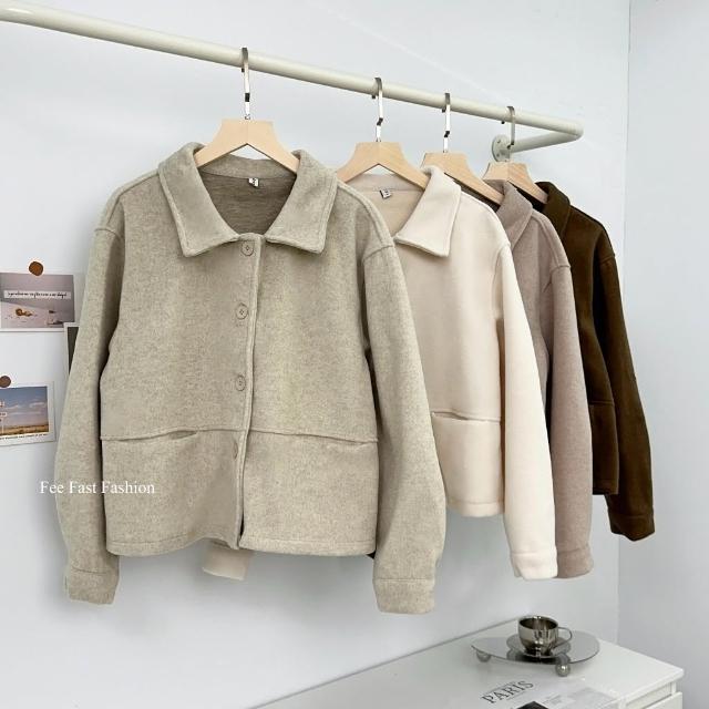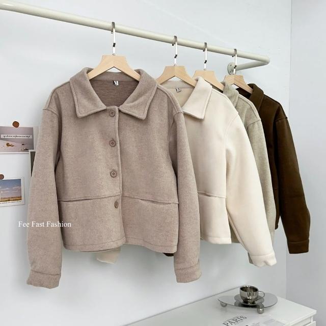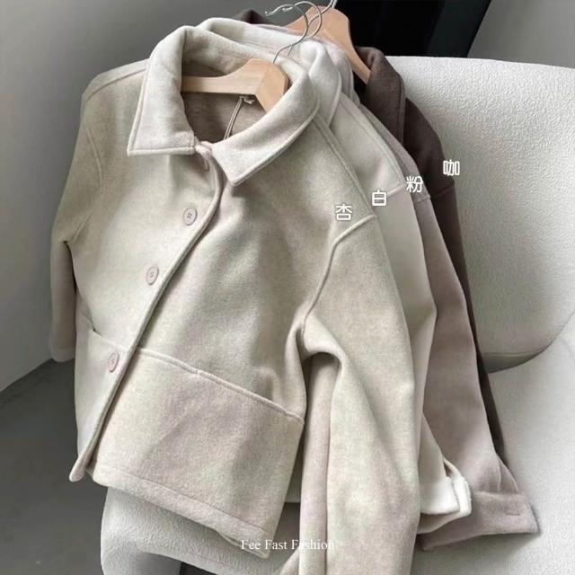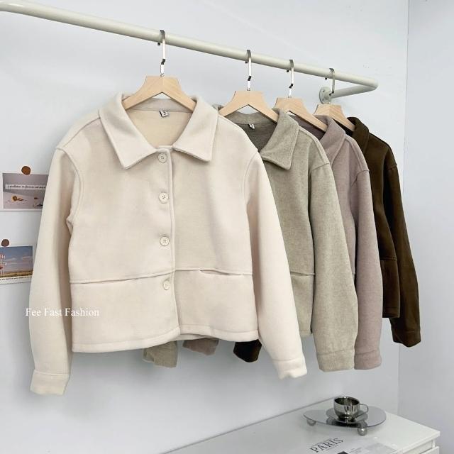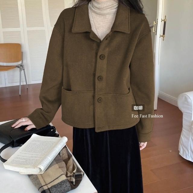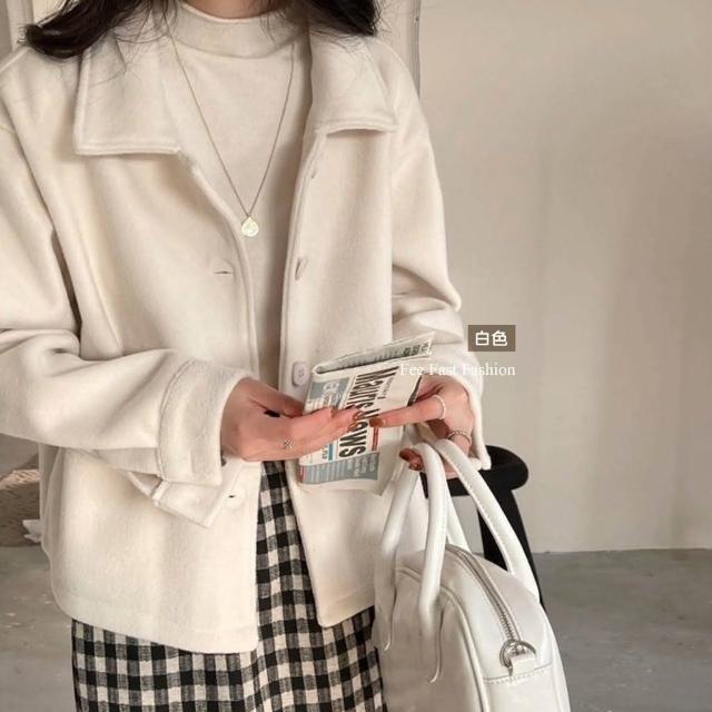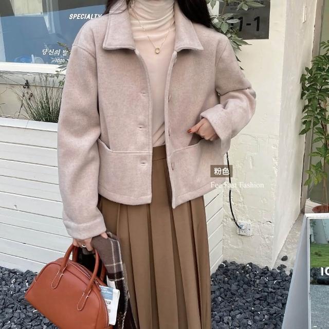 FEE BABY【Fee隔日到貨4色】厚毛呢翻領排釦外套🔥羊絨 毛呢外套 羊絨外套 翻領外套 春季外套 短版外套 韓系穿搭 春天