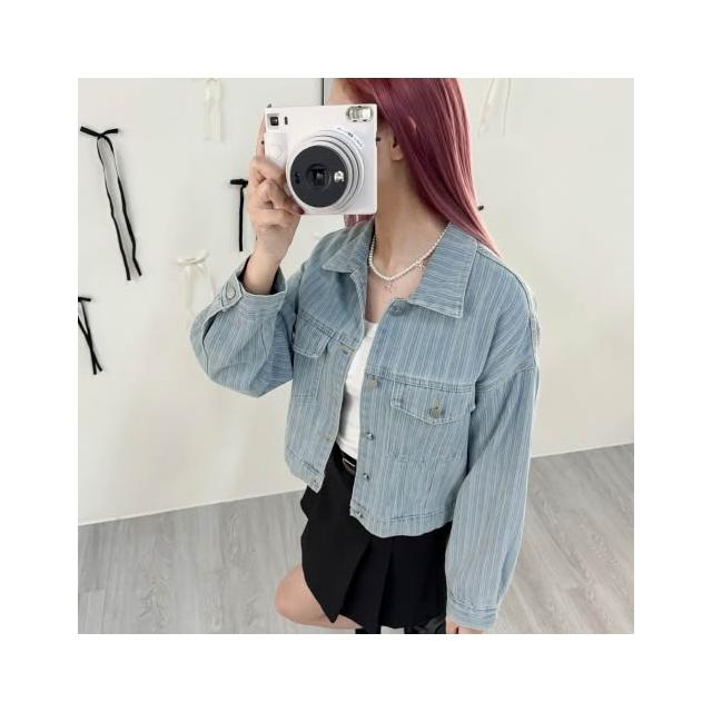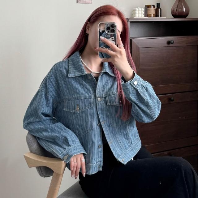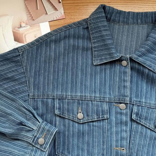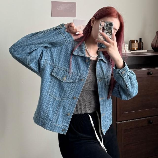 FEE BABY【Fee現貨2色】設計感直壓紋丹寧牛仔外套🔥直條紋牛仔外套 翻領復古牛仔外套 素色雙口袋牛仔外套 女性外套