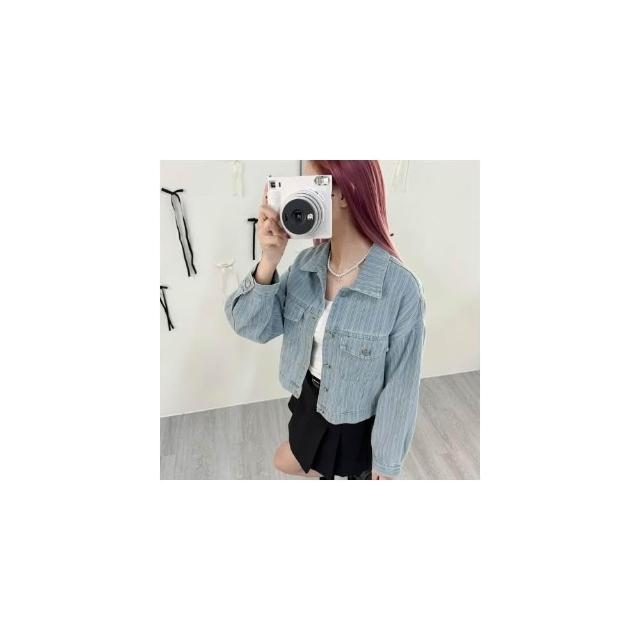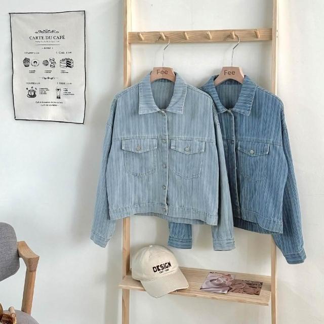 FEE BABY【Fee隔日到貨】直紋丹寧翻領短夾克🔥外套 牛仔外套 短版外套 牛仔 日系外套 小外套 夾克 條紋 設計感外套 女外套