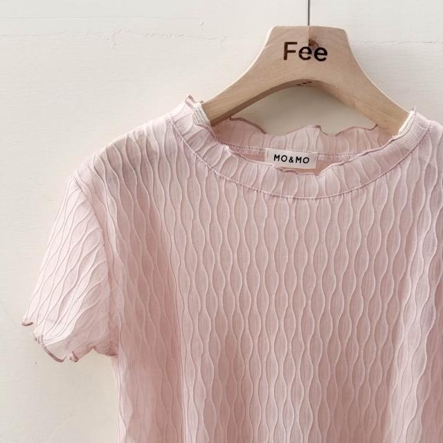 Fee現貨6色捲邊小立領透膚短袖上衣🔥微捲邊網紗透膚短袖 內搭網紗上衣 捲邊透膚T恤 木耳邊短版T