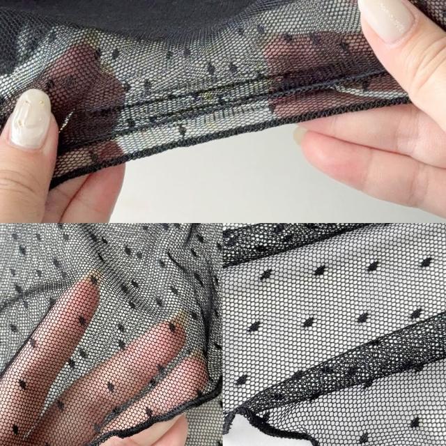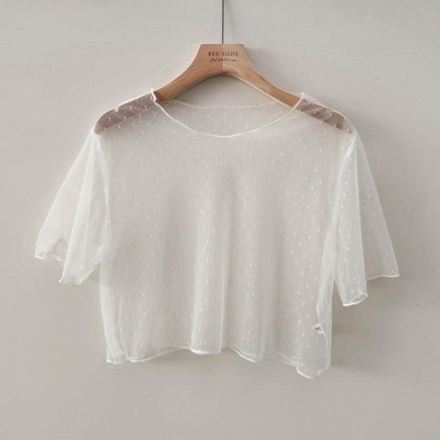 FEE BABY【Fee隔日到貨4色】雨滴點點網紗透膚短袖T恤🔥微捲邊圓點短袖上衣 內搭網紗上衣 捲邊透膚T恤 木耳邊短版T 輕薄上衣