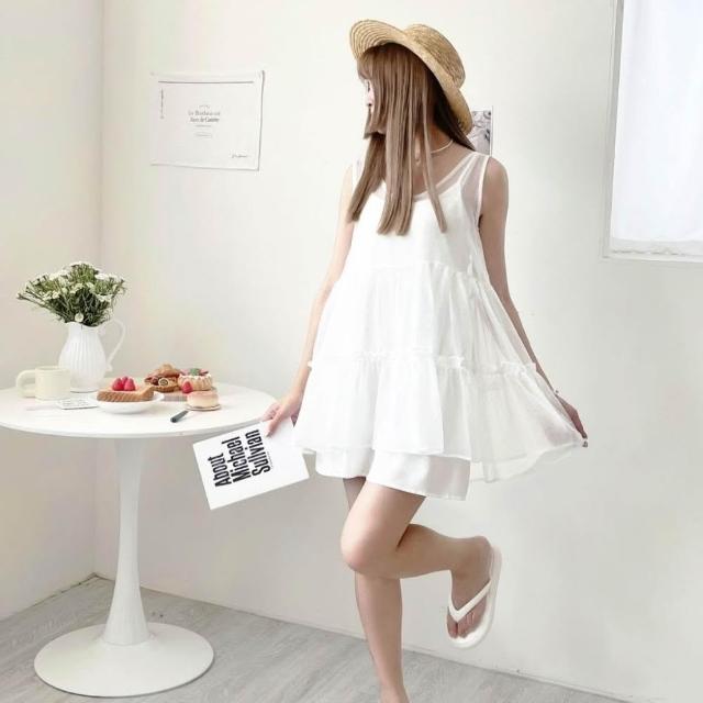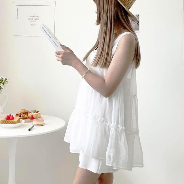 FEE BABY【Fee現貨7色】荷葉邊蛋糕寬肩帶洋裝+同色系細肩吊帶套裝SET🔥質感套裝 休閒洋裝 顯瘦套裝 連身裙 度假套裝