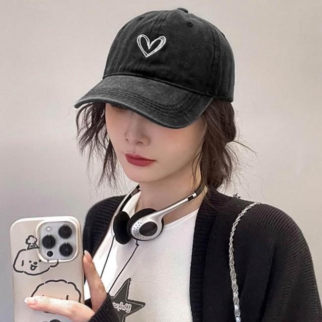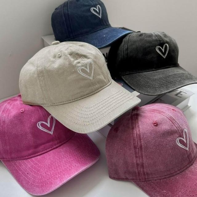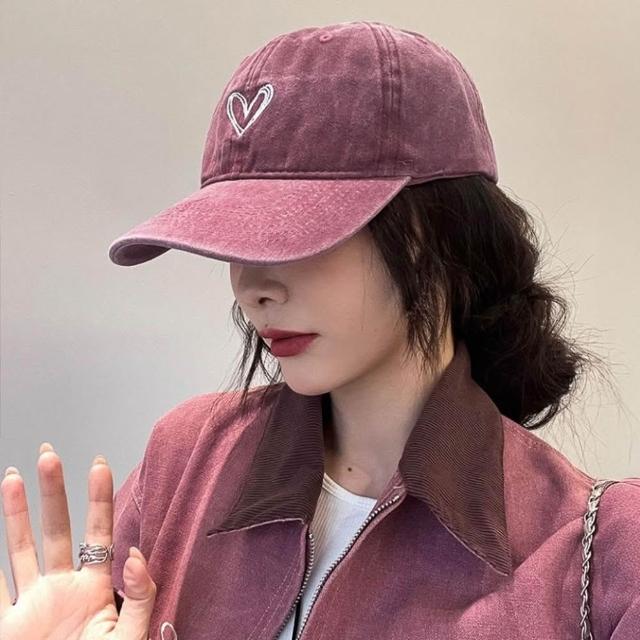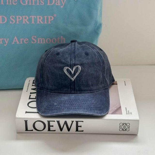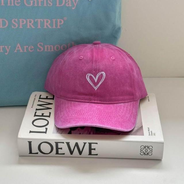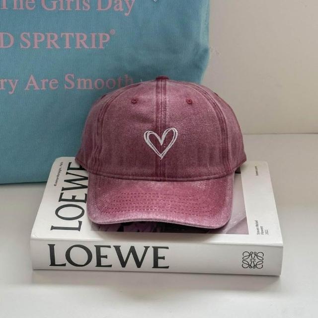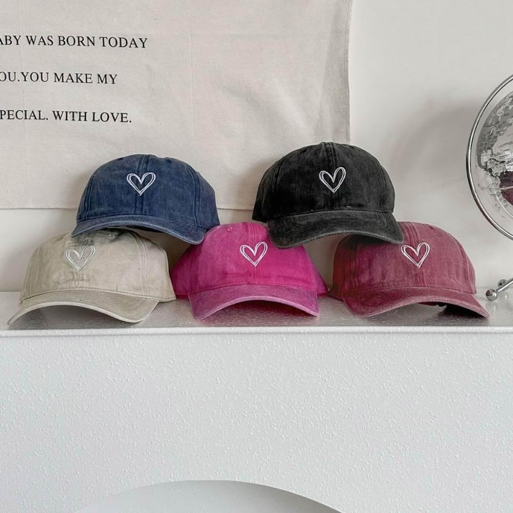 FEE BABY【Fee隔日到貨5色】復古刺繡塗鴉愛心水洗寬檐棒球帽🔥鴨舌帽 防曬帽 老帽 帽子女 防曬帽 韓系棒球帽 帽子 運動帽