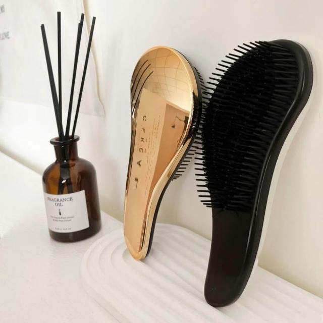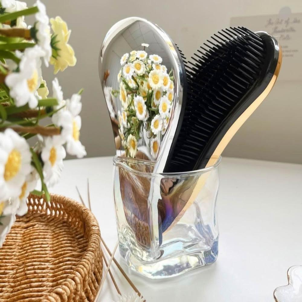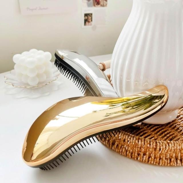 FEE BABY【Fee隔日到貨2色】金屬光澤感鏡面按摩大號寬握柄梳子🔥梳子 高顱頂梳 大板梳 按摩梳 髮根梳 蓬鬆髮梳 美妝梳子