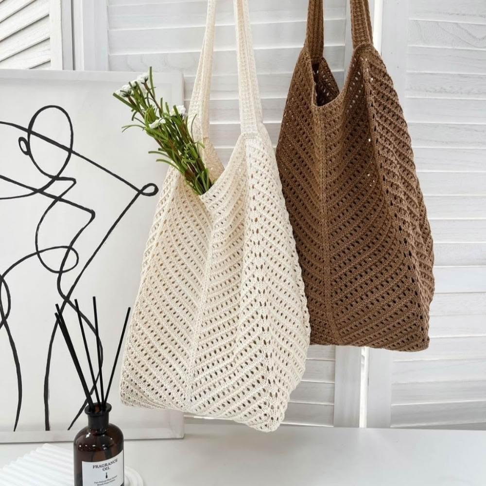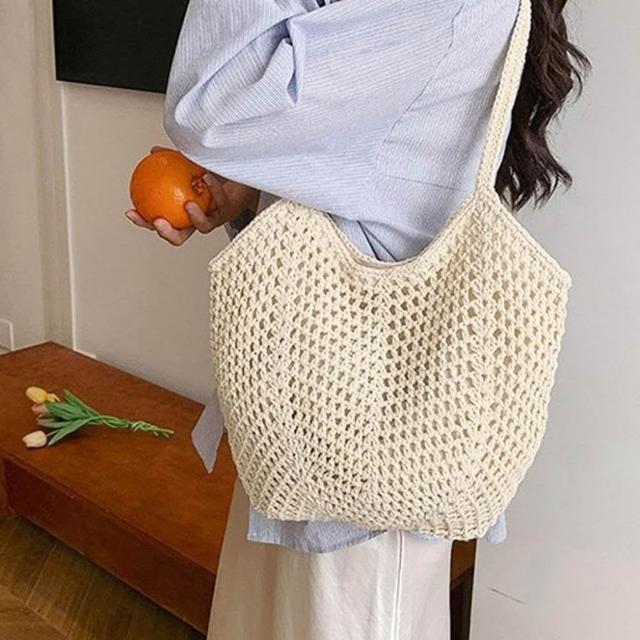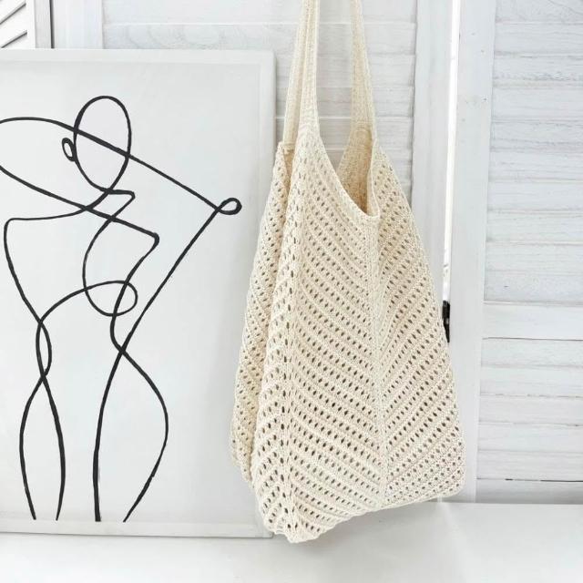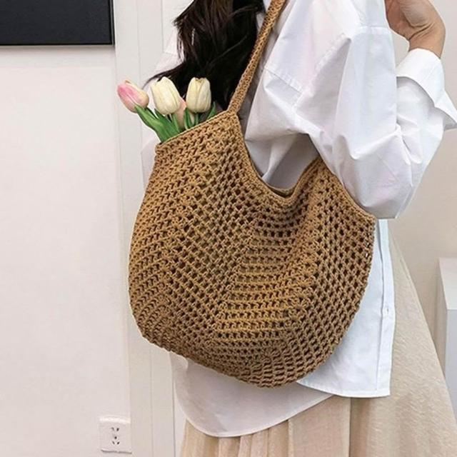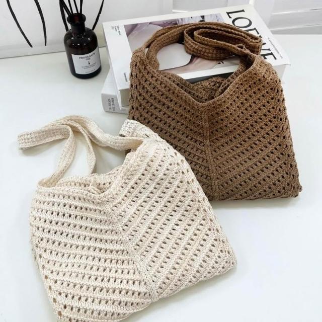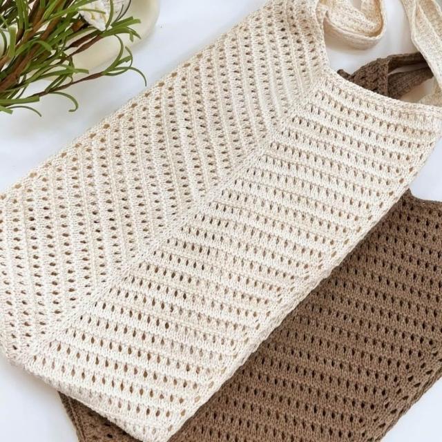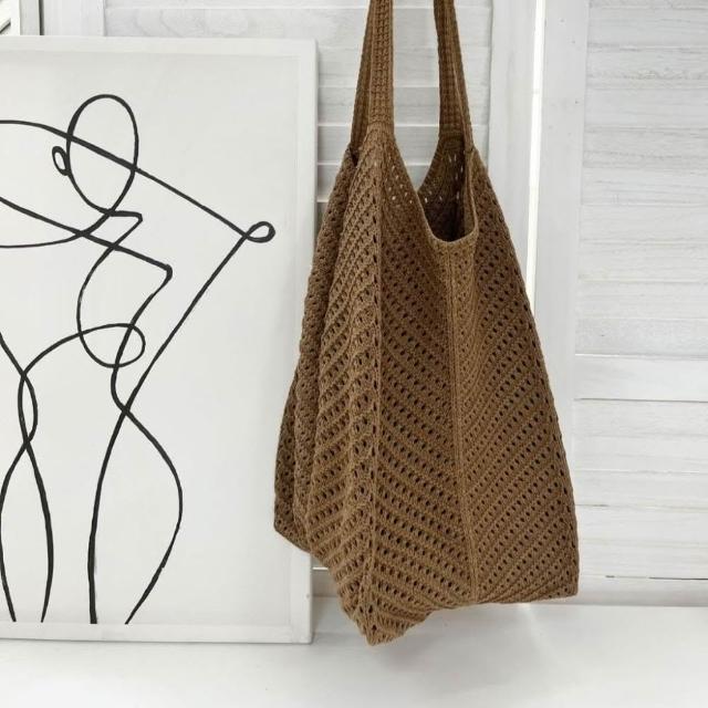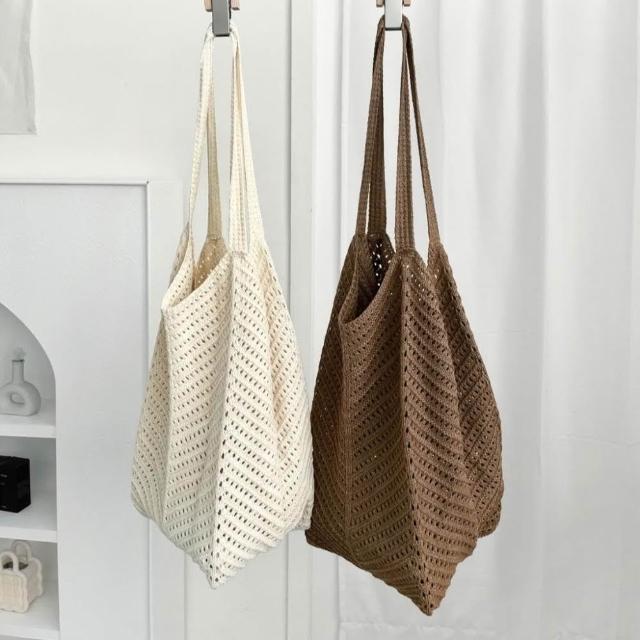 FEE BABY【Fee隔日到貨2色】大容量鏤空洞洞針織編織側背包🔥編織包 草編包 沙灘包 女包 單肩包 購物袋 海邊沙灘包 肩背包