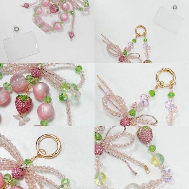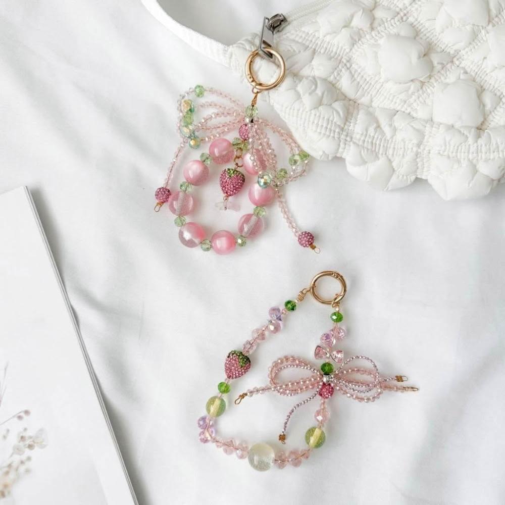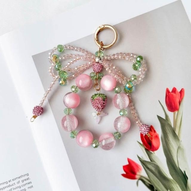 FEE BABY【Fee隔日到貨2色】碎鑽草莓蝴蝶結串珠掛繩包包吊飾🔥鑰匙圈 鑰匙扣 可愛吊飾 配件 Air Pods 掛件 手機吊飾