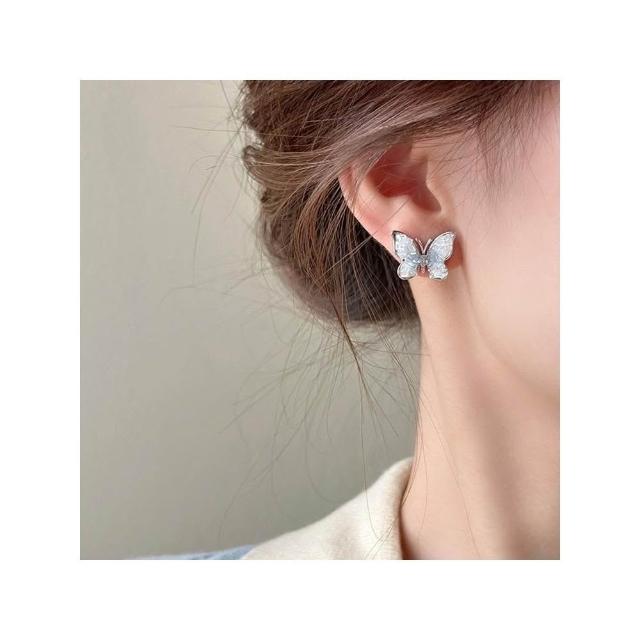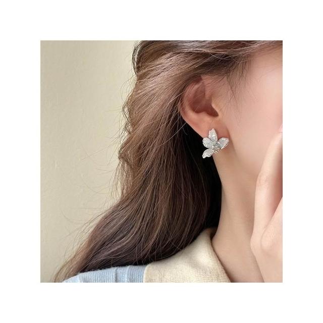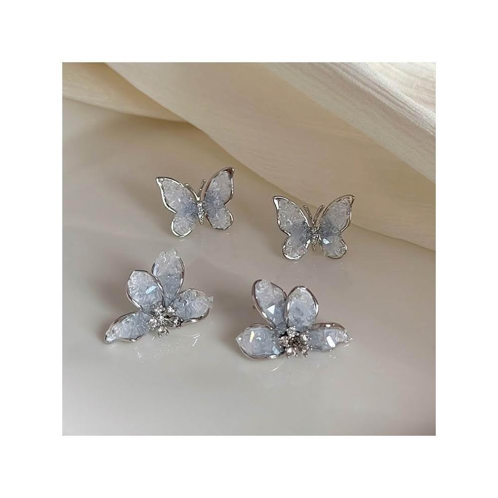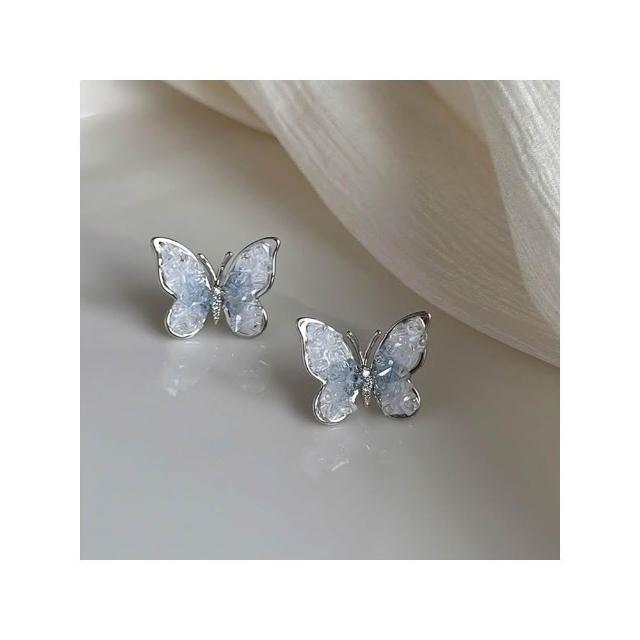 FEE BABY【Fee現貨2色新品】925純銀耳針漸變藍水晶蝴蝶花瓣耳釘🔥耳針 耳環 配飾 珍珠光 耳飾 復古輕奢氣質 女生飾品
