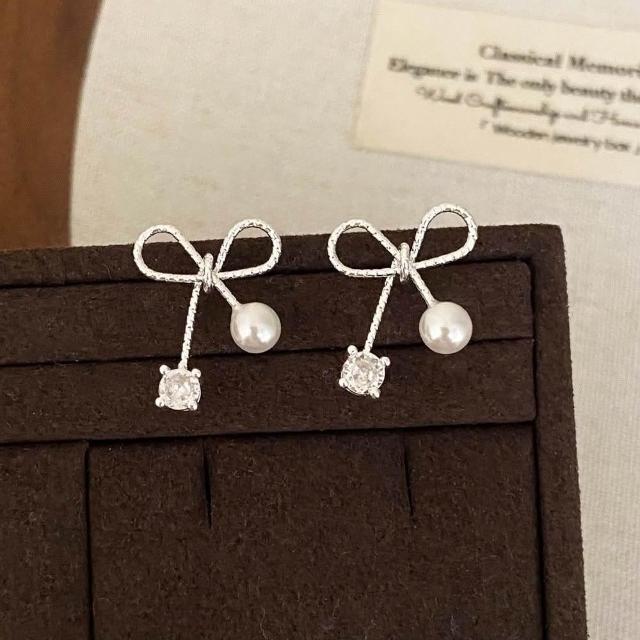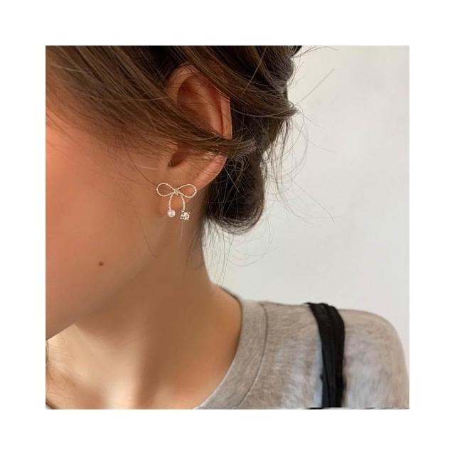 FEE BABY【Fee現貨2色新品】925純銀耳針金銀珍珠蝴蝶結碎鑽耳釘🔥耳針 耳環 配飾 珍珠光 耳飾 復古輕奢 女生飾品 韓系耳環