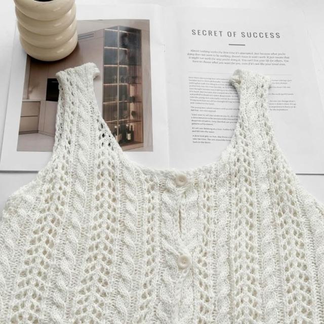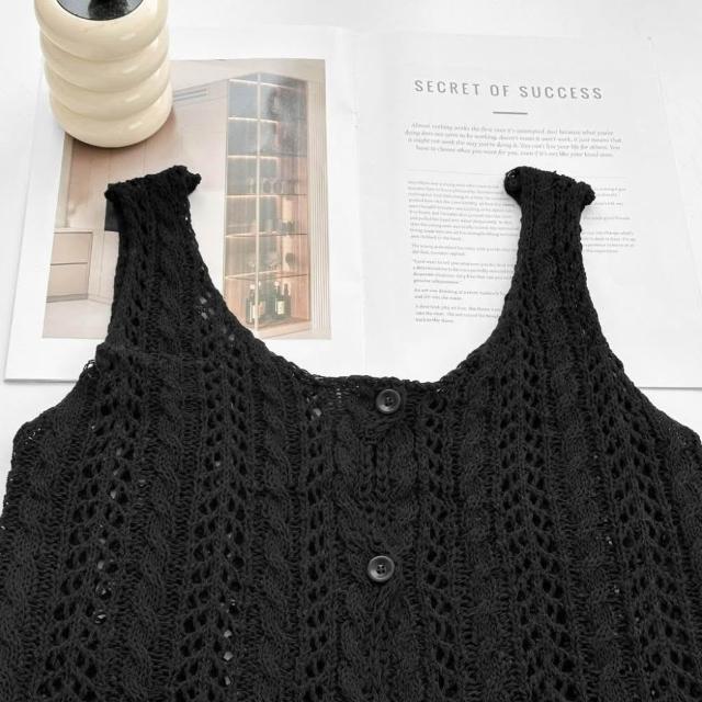 Fee隔日到貨5色極簡麻花鏤空排釦疊穿針織背心🔥小背心 兩件式穿搭 薄針織背心 無袖 外罩背心 毛衣背心 馬甲背心