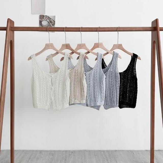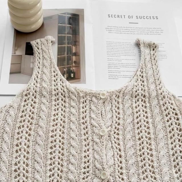 Fee隔日到貨5色極簡麻花鏤空排釦疊穿針織背心🔥小背心 兩件式穿搭 薄針織背心 無袖 外罩背心 毛衣背心 馬甲背心