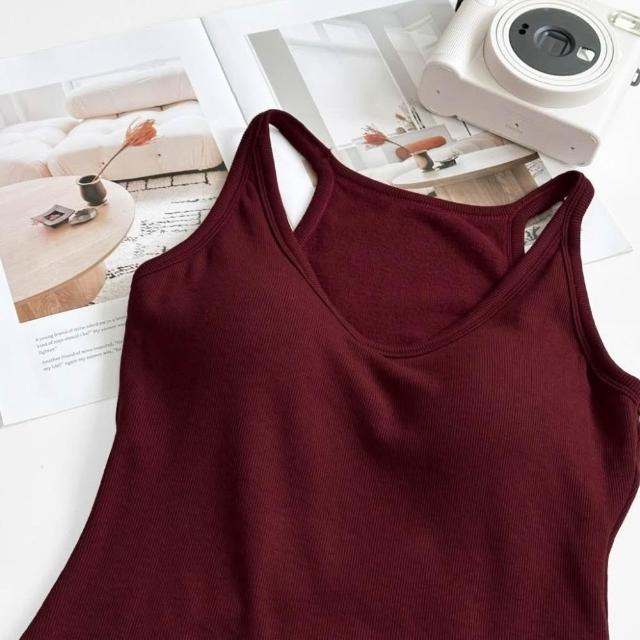 Fee隔日到貨5色螺紋工字細肩帶小可愛 BRA TOP🔥不可拆式胸墊 螺紋吊帶 細肩帶背心 吊帶背心 彈力背心