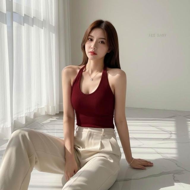 Fee隔日到貨5色螺紋工字細肩帶小可愛 BRA TOP🔥不可拆式胸墊 螺紋吊帶 細肩帶背心 吊帶背心 彈力背心
