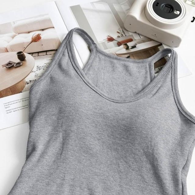 Fee隔日到貨5色螺紋工字細肩帶小可愛 BRA TOP🔥不可拆式胸墊 螺紋吊帶 細肩帶背心 吊帶背心 彈力背心