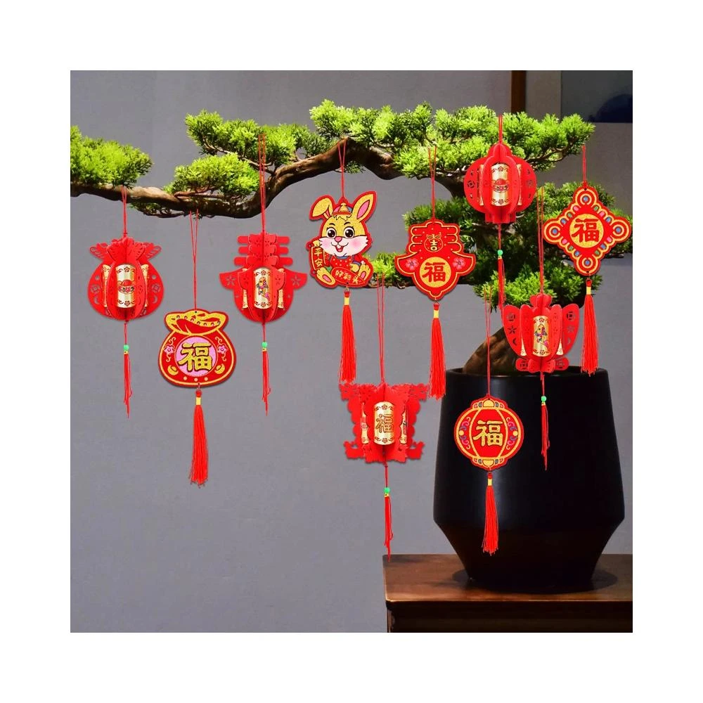 新春燈籠 立體燈籠 燙金 2024新年裝飾 盆景 春節掛飾 植絨燈籠 春聯 除夕 元寶/福袋/中國結/大吉