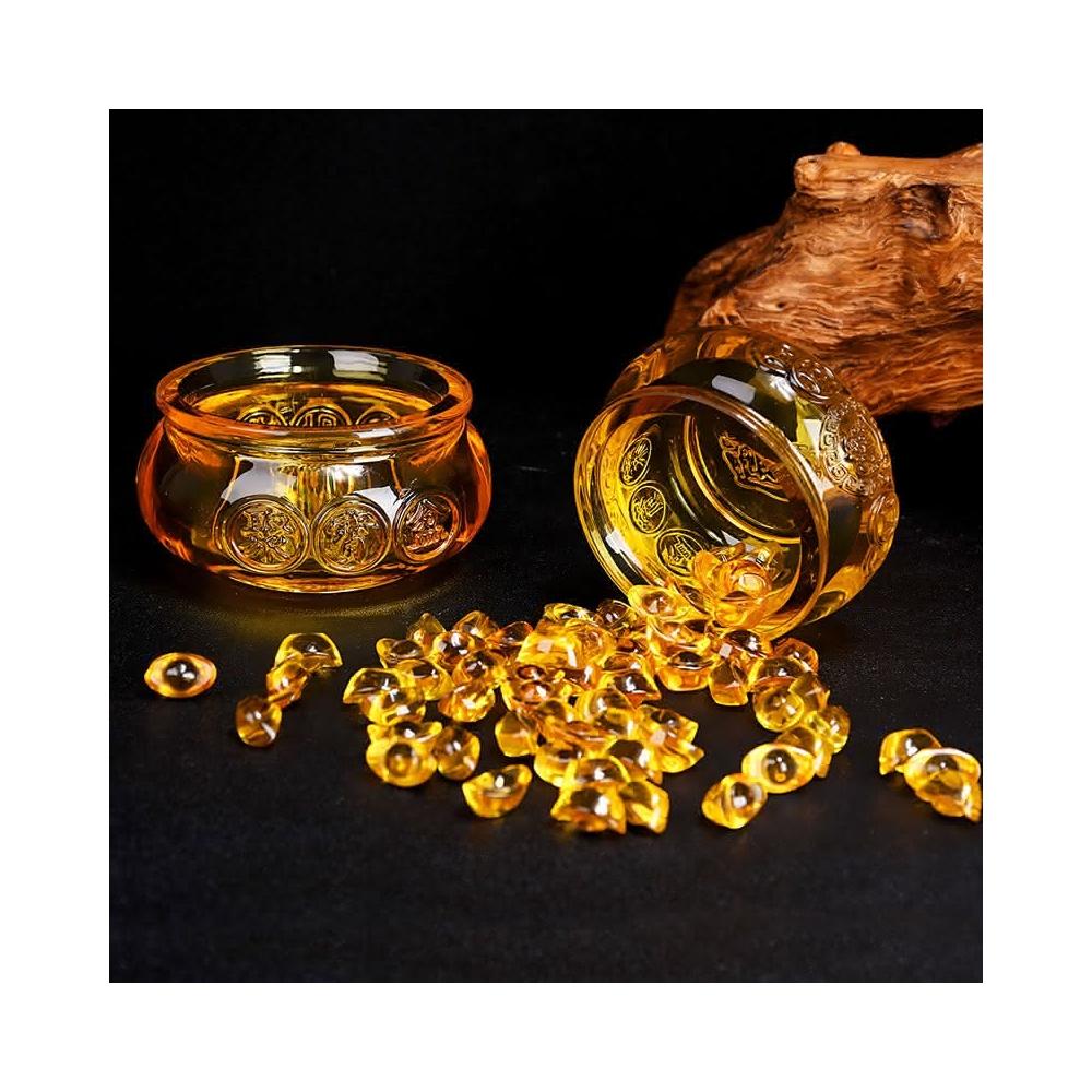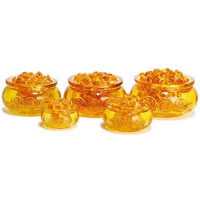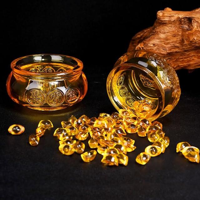 水晶聚寶盆 黃金聚寶盆 黃水晶 琉璃工藝 招財擺飾 開運風水 春節裝飾 新年新春 開運飾品 5cm