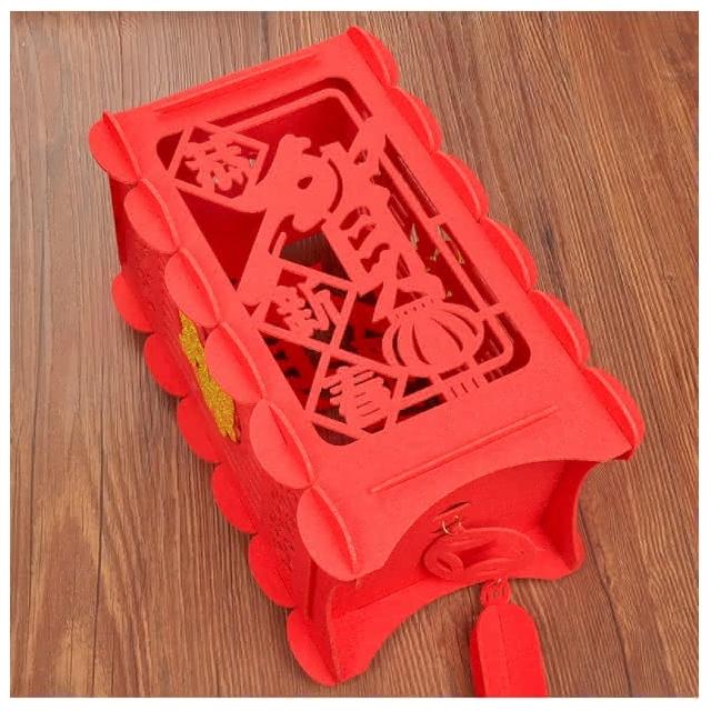 春節裝飾 燈籠 無紡布 貼金福字 宮燈 掛件 新年元旦 佈置 中國結 掛飾 方形燈籠-招財進寶&年年有餘/壁掛-加厚版不含福球