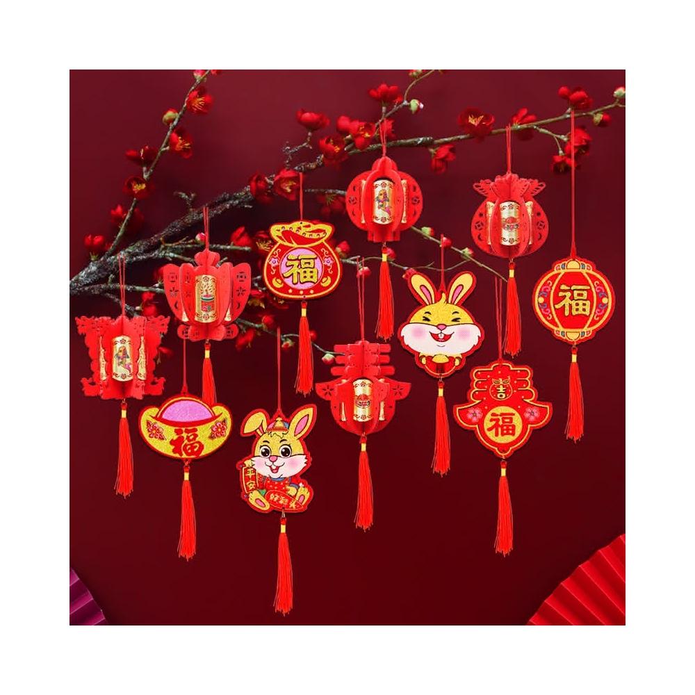 新春燈籠 立體燈籠 兔年 2023新年裝飾 盆景 春節掛飾 植絨燈籠 兔子擺飾 春聯 除夕