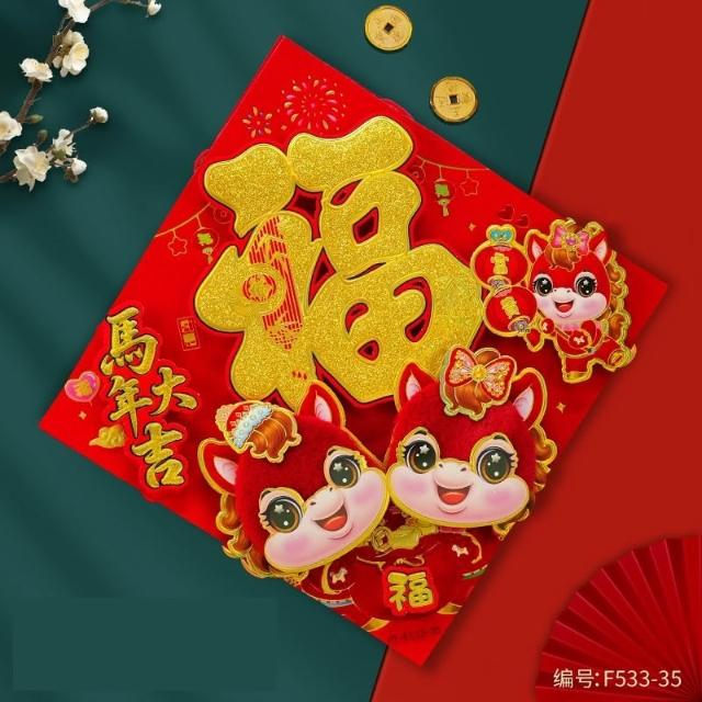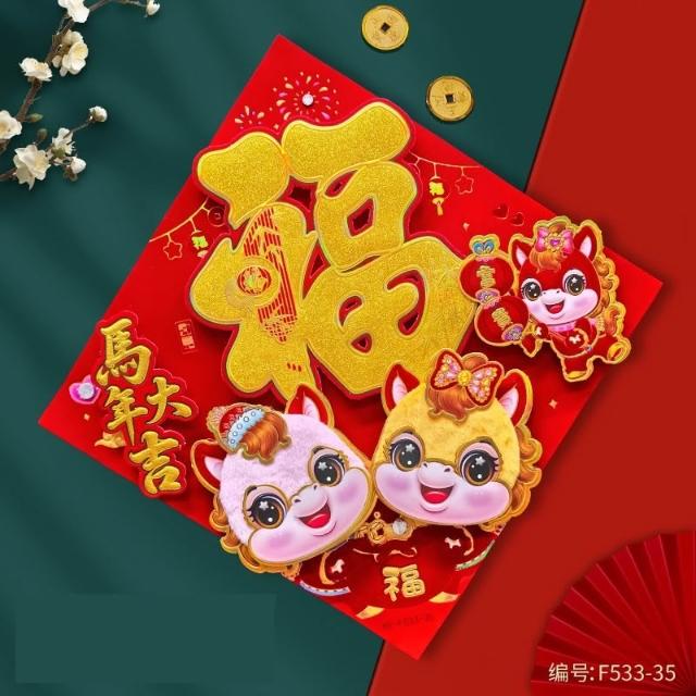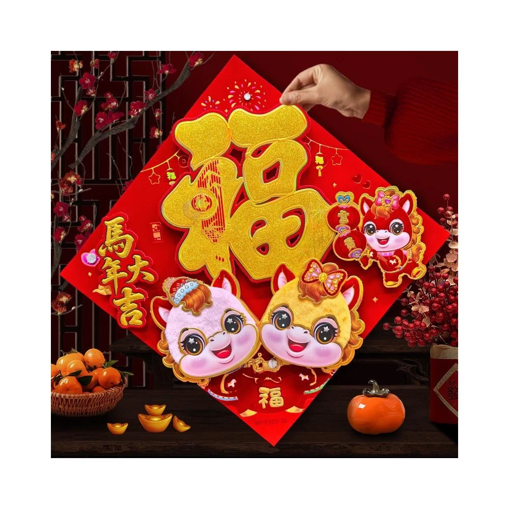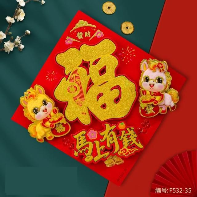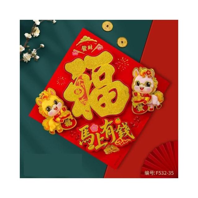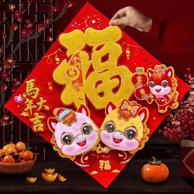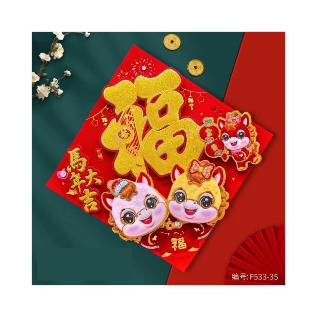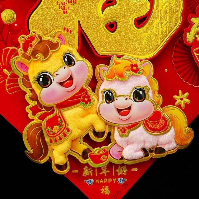 2026 馬年 春聯 毛絨福字貼 福字斗方 燙金立體春聯 馬年春聯 絨毛門貼 春節 新年 春節裝飾 過年裝飾