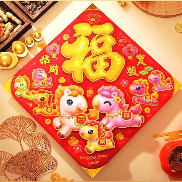 2026 過年 新年 春節 馬年燙金斗方 立體春聯 立體門貼 馬年春聯 燙金門貼 春節裝飾 過年裝飾 春聯