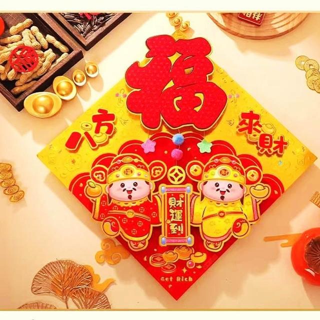 過年 新年 春節 燙金斗方 2026立體春聯 馬年春聯 燙金門貼 35cm 春節裝飾