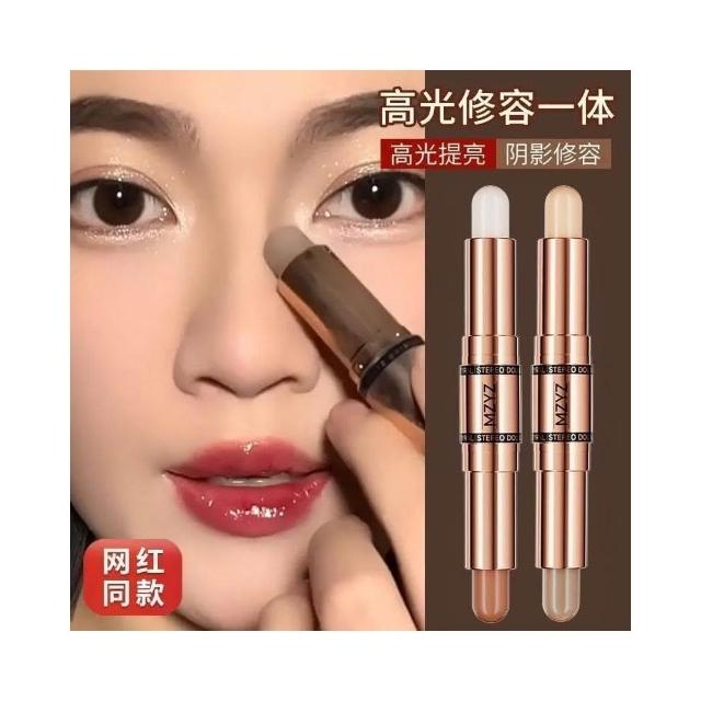 新品 雙頭修容棒筆防水臉部淚溝提亮 自然啞光 高光 打亮 修容立體輪廓雙頭修容棒遮瑕新手易修容 臉部遮瑕修容筆 V臉棒
