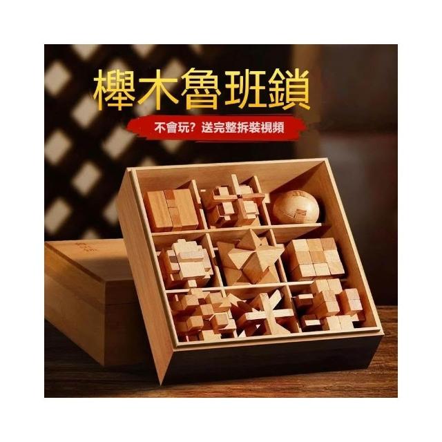 中國中式孔明鎖 櫸木魯班鎖 全套開發智力解環套裝 解連環 魯班鎖 魯班鎖全套玩具 兒童益智玩具 生日禮物