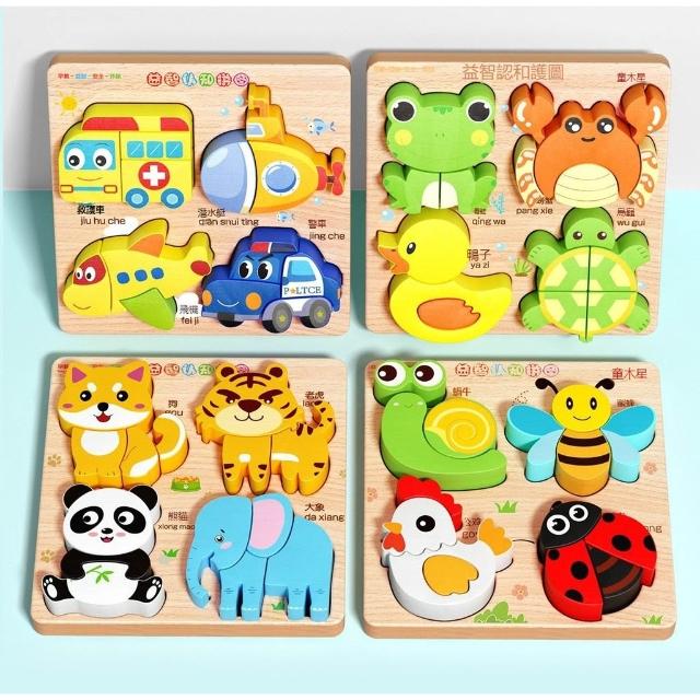 3D立體動物拼圖 寶寶拼圖 早教拼圖 拼圖玩具 益智拼圖 兒童拼圖 啟蒙玩具 木質拼圖 兒童動物交通拼圖