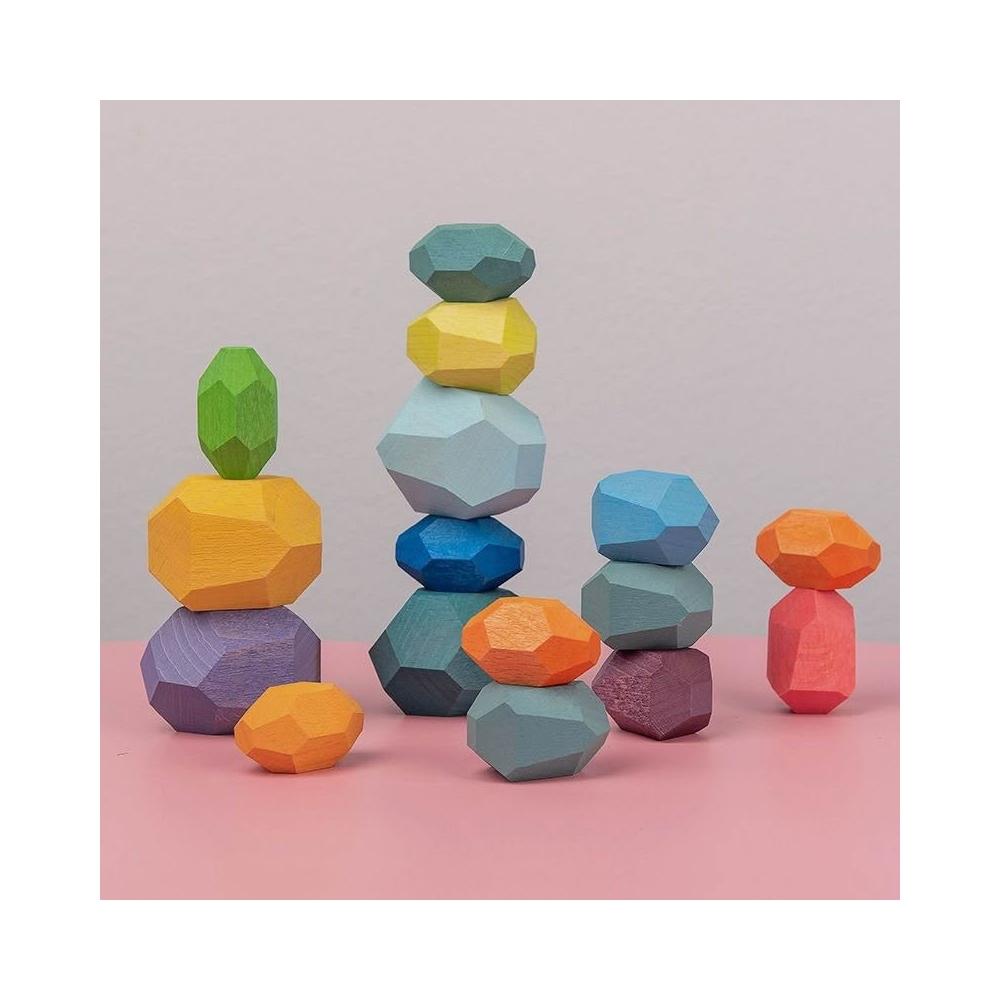 兒童疊疊樂 疊石 石頭疊疊樂 平衡石 平衡疊疊樂 木製彩色石頭疊疊樂 木制桌游 木頭疊疊樂 早教玩具 益智玩具