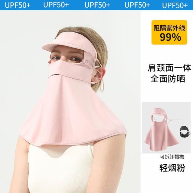 防曬口罩護頸遮陽大帽簷冰絲全臉基尼防紫外線掛耳透氣可拆卸面罩