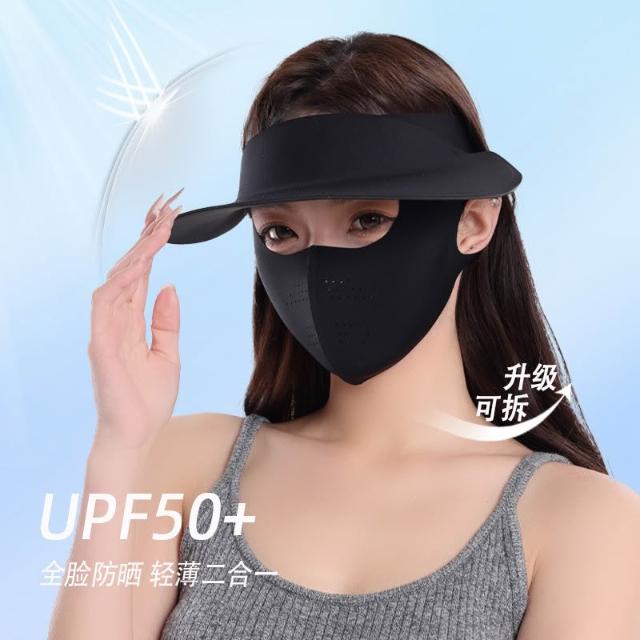 夏季防曬面罩女防紫外線遮全臉冰絲口罩遮陽帽子一體高顏值臉基尼