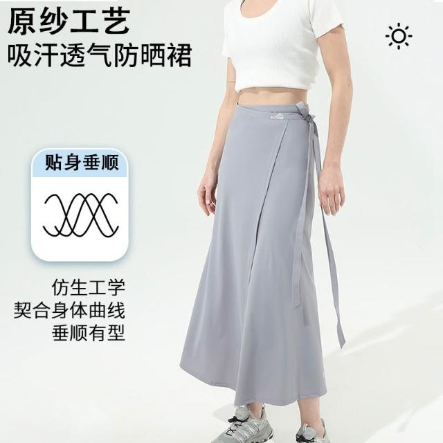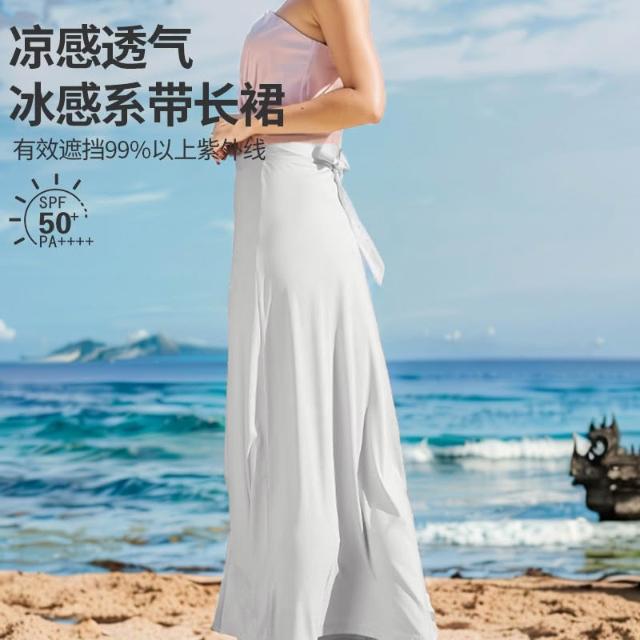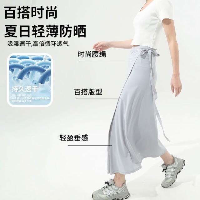 夏季防曬純色一片式百搭顯瘦戶外防紫外線透氣涼感高腰防曬半身裙