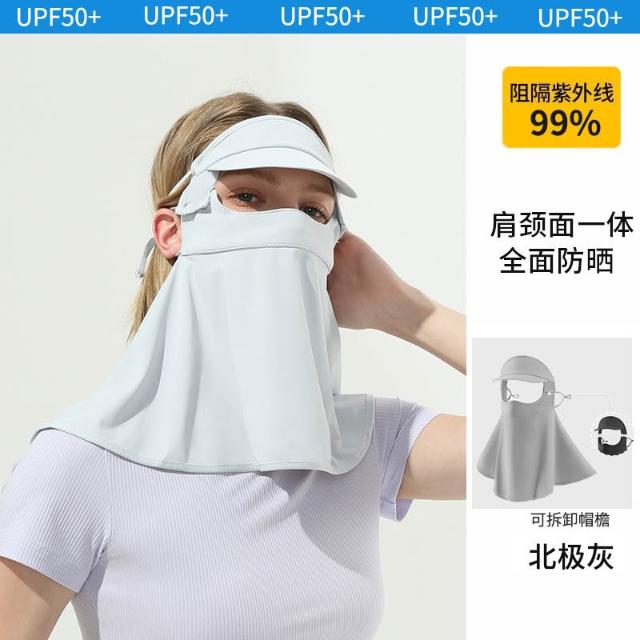 防曬口罩護頸遮陽大帽簷冰絲全臉基尼防紫外線掛耳透氣可拆卸面罩