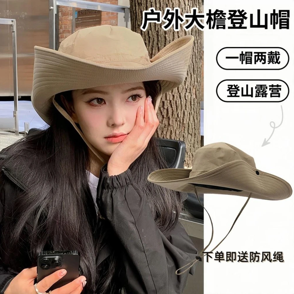便攜圓頂登山帽西部牛仔帽漁夫帽女透氣防曬帽戶外露營夏遮陽帽子