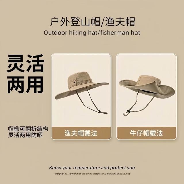 便攜圓頂登山帽西部牛仔帽漁夫帽女透氣防曬帽戶外露營夏遮陽帽子