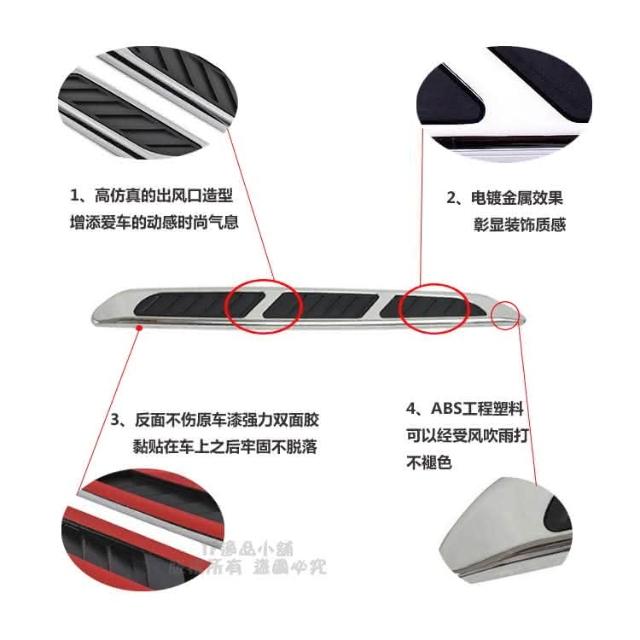 逸品汽車百貨 長條側邊鯊魚鰓出風口 裝飾引擎蓋風口 偽裝進氣孔 通風孔裝飾貼 一對入E46 E90