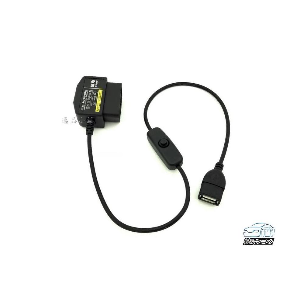 逸品汽車百貨 OBD2轉USB降壓線 24小時監控 停車監控 不斷電 低壓保護 帶開關 OBDII轉USB 轉接線