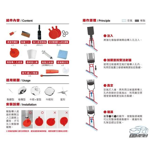 逸品汽車百貨 『贈UV紫外線燈』擋風玻璃修補組 前擋玻璃修復組 裂縫型/星狀型/複合型/牛眼型 玻璃修理