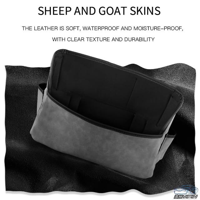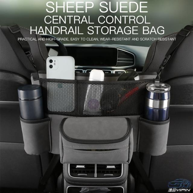 逸品汽車百貨 『高檔翻毛皮』中央扶手懸掛式置物袋 多功能收納袋 大容量 置物架 面紙盒 置物盒 水杯架 置杯架 飲料架