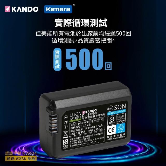Kamera 佳美能Kando 適用SONY NP-FW50 相機配件 相機電池 另售相機電池+充電器 適用 NEX-3 NEX-3A