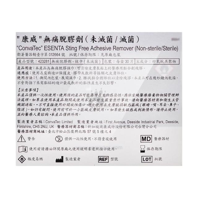 ESENTA 康威 無痛脫膠劑-抹巾(未滅菌/滅菌) 30片/盒+無痛脫膠劑(未滅菌/滅菌)50ml_照護組 樂齡生醫